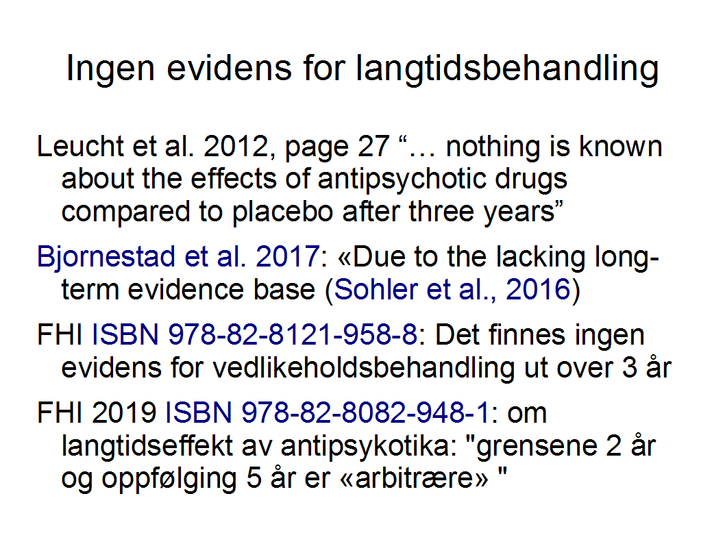 86% av behandlere/psykiatere tror på at langtidsmedisinering er nyttig, selv om det ikke finnes evidens for det (Sohler et al. 2015)